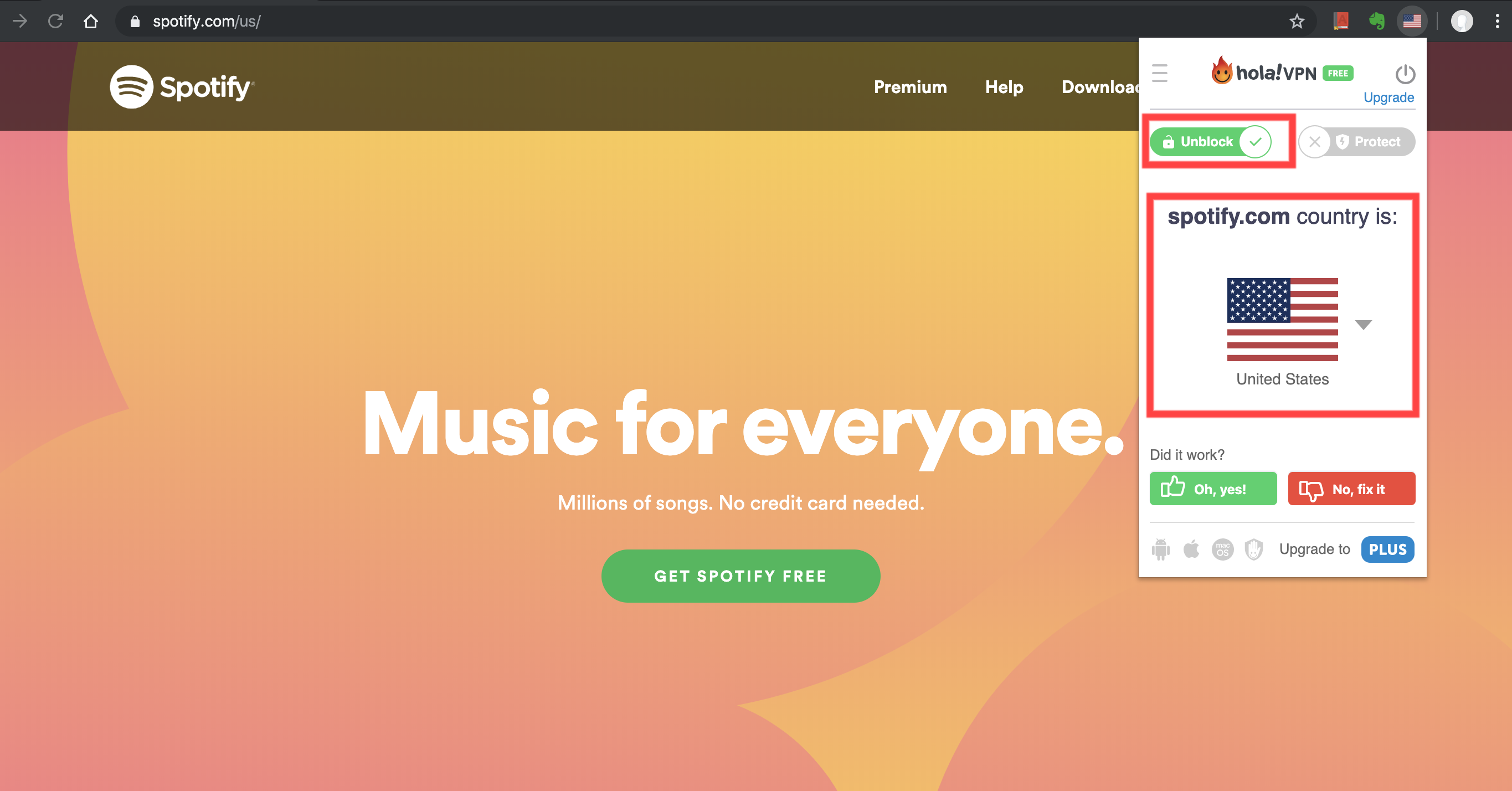VPN을 사용하고자 하는 웹사이트에 접속합니다. 이후, 접속 국가로 지정할 국가의 국기를 설정한 다음, UNLOCK을 클릭합니다. 이후 창이 새로고침되며 새롭게 웹페이지에 접속할 수 있습니다.