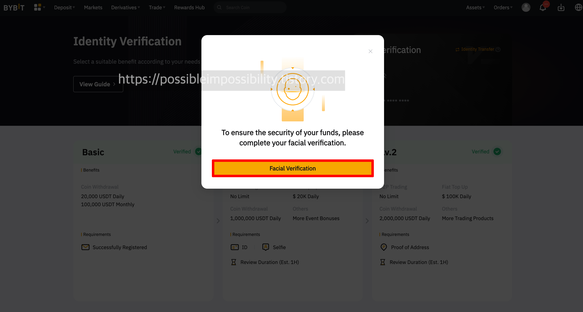 이제 바이비트 레퍼럴 최대 할인을 받기 위해 KYC를 초기화해보도록 하겠습니다. 바이비트 거래소 KYC 변경 후 신규 가입 방법은 다음과 같습니다. 참고로 이 과정 마지막에는 얼굴 인식을 하셔야 하기 때문 모바일 웹이나 앱에서 진행하시는 것이 좋습니다.