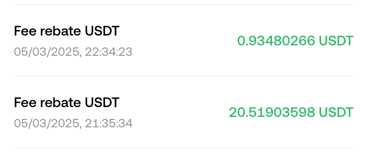 당장은 할인 혜택이 작아 보이시나요? 그러나 OKX 현물에서 1억을 거래한다고 해보겠습니다. 그러면 수수료는 10만원인데요. 할인을 받게 되면 10만원이 아닌 7만원만 지불하게 되는 것입니다. 즉, 3만원을 할인 및 페이백 받게 되는 것이죠.