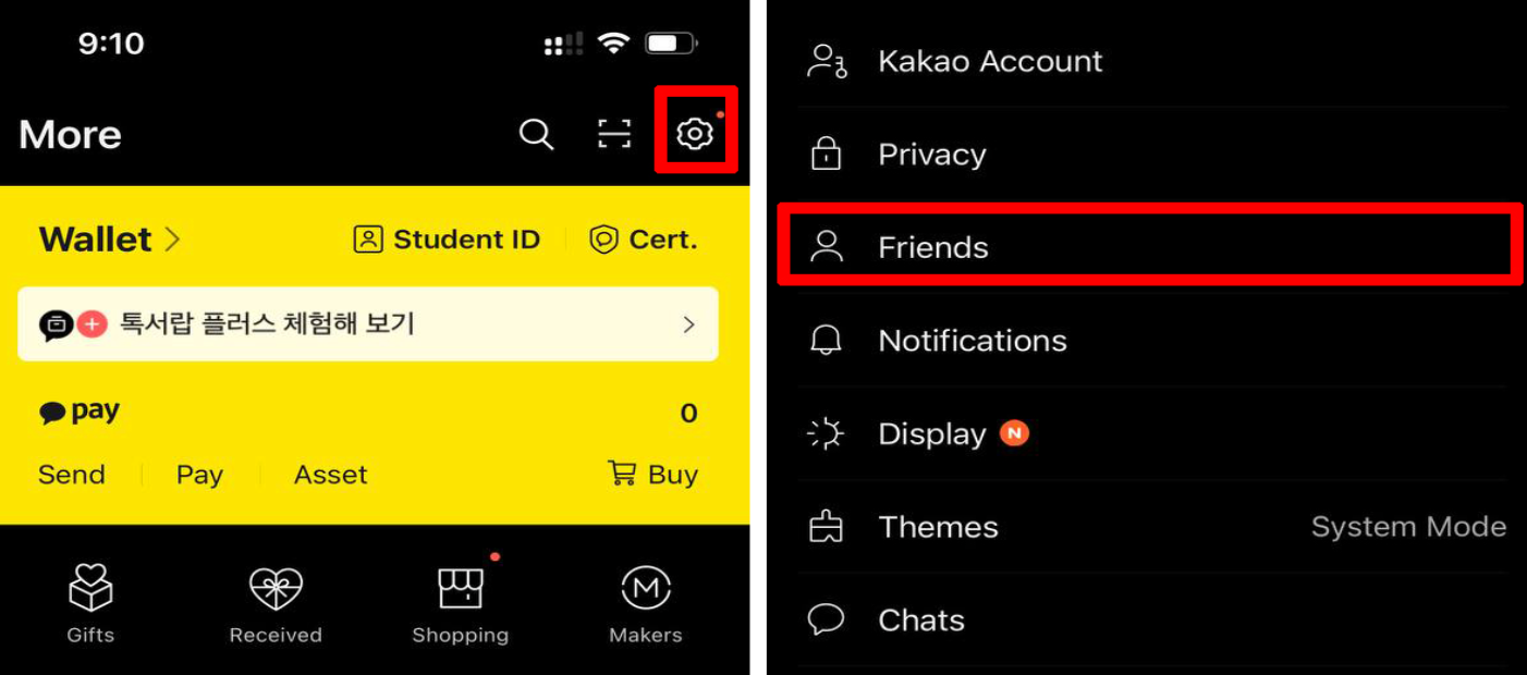 3. 설정에서 친구 탭으로 이동하여 [친구 목록을 새로고침]합니다.