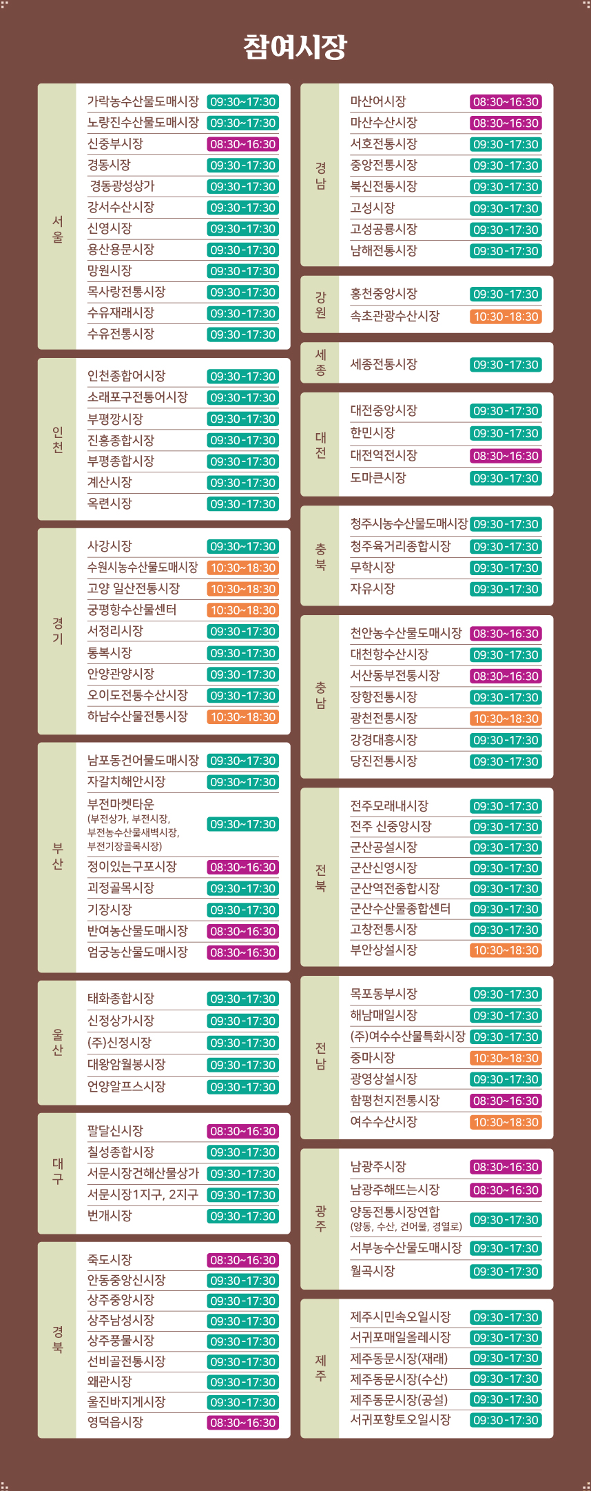 전국 234개의 전통시장에서 온누리상품권 환급이 가능합니다. 대표적으로 서울의 마장 축산물시장, 가락시장, 부산의 동래시장, 대구의 서남시장 등이 포함됩니다. 자세한 전통시장 목록은 아래의 사진을 참고해보시기 바랍니다.